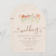 Boho Fall Wildflower beige terracotta rust Wedding arch Invitation with RSVP wedding website QR code, a stunning blend of autumnal charm and elegant sophistication. This watercolor design showcases hand-painted wildflowers in a vibrant garden meadow, with a rich palette of burnt orange, terracotta, brown, purple, yellow, coral, burnt umber, peach, and soft pink, capturing the warmth and beauty of the fall season on a beautiful beige light brown background.