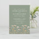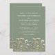 The background is a soft sage green on both sides, with the text in elegant dark gray fonts. Handwritten script blends with modern serif typography for a clean, contemporary feel. The muted floral palette complements a variety of wedding styles, from rustic outdoor gatherings to chic metropolitan events.