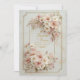 Invite your guests with a touch of soft, springtime romance using this exquisitely detailed invitation. The design features a sophisticated "ticket-style" geometric frame with inverted rounded corners, outlined by a slender double-line border in a shimmering antique gilded finish. Draping gracefully over the top right and bottom left corners are lush arrangements of blush-colored cosmos and ivory wildflowers, their petals rendered with delicate realism. The floral clusters are accented with subtle bronze foliage and stems, set against a pale, creamy background that hints at a faint, watermark-style botanical pattern for added depth. This gentle and airy aesthetic is a flawless choice for a garden bridal shower, a spring wedding, or a sophisticated high tea. You might also select this lovely design for a sweet sixteen birthday party, a mother's day brunch celebration, or a romantic engagement announcement for a couple who adores pastel florals.