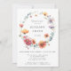 This design features a delicate watercolor wreath made of wildflowers in shades of blue, red, orange, violet, and gold. Perfect for outdoor graduation parties.