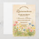 A joyful meadow of watercolor wildflowers blooms along the base of this elegant quinceañera design. Soft blush cosmos, delicate white daisies, buttery yellow blossoms, and airy blue florals rise against a warm parchment background, creating a fresh garden feel with timeless charm. Refined gold typography adds a graceful, celebratory touch while keeping the composition light and balanced. Perfect for a quinceañera celebration filled with romance, color, and countryside elegance.