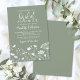 Simple Wildflower Boho Bridal Shower Invitation. Perfect for spring through autumn celebrations, this minimalist design features a sage green background on both the front and back for a soft, calm, and timeless look. A simple white outline wildflower art border sits along the bottom, creating a clean green-and-white palette that feels elegant, modern, and subtly cute.