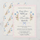 Floral Wedding invitations with beautiful romantic delicate watercolor wildflowers in blue and pink, with soft blue ribbon on a vintage cream scalloped background. Easy to personalize names, and wedding invitation wordings in a lovely script fonts. Pretty country wedding style.