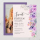 Celebrate your Sweet 16 with a touch of spring! This beautifully designed invitation features a delicate purple and pink floral theme, perfect for a blossoming birthday. Personalize the back with a customizable photo to make your special day even more memorable!"