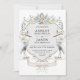 Este design de convite para casamento, inspirado na natureza, é uma escolha encantadora para um casamento ao lado de um lago ou na frente de água. Tem uma combinação interessante de um escudo creme embelezado com elementos florais azuis e brancos de aquarela, incluindo o lótus azul raro, e verde juntamente com um par de ervas azuis. Personalize o modelo de texto com os detalhes do casamento.