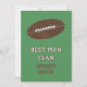 This best man card has a football on the front along with the words, "TEAM BEST MAN (NAME)." On the reverse side of the flat card are the words, "Can I add you to my team?" This is a fun football themed way to ask someone to be your best man. Copyright Henis House of Paper