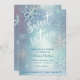 Simples e elegante flocos de neve de luxo azul brilha doces 16 design convite de festas.
