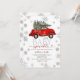 Celebrate your little one’s upcoming arrival with this charming Winter Baby Sprinkle Invitation, featuring a vintage red car carrying a Christmas tree among soft gray snowflakes.