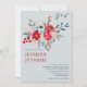 A winter and Christmas floral red burgundy, dusty blue, navy blue on ice blue with white snowflakes wedding invitation with pretty flowers in a floral watercolor wreath with a modern font, add your initials or monogram and photo.