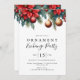 Convide amigos e família para celebrar a temporada com este Convite de festas de troca de Enfeites de natal Florais de inverno. Apresentando poinsetos vermelhos suaves, sagrados, ramificações de pinheiro e ornamentos festivos, a design captura o calor e a alegria das festas. Uma paleta clássica vermelha, verde e branca com delicados detalhes de inverno a torna perfeita para receber uma festa de troca de ornamentos festiva.