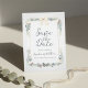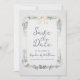 Welcome your guests with style using this elegant winter themed Save The Date. Featuring a luxurious cream satin bow, delicate snowflakes, and soft floral arrangements in blush pink and dusty blue, this design adds a refined winter-garden charm to your special day. The neutral palette—highlighting white roses, eucalyptus, and pinecones—brings a romantic seasonal touch, perfect for winter weddings, holiday nuptials, and seasonal celebrations. Easily personalize to create a warm and memorable save-the-date announcement for your celebration.