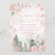 EDITABLE Winter Forest Pink Snow In Love Christmas Birthday Invitation