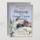 A winter-themed anniversary invitation featuring snowy mountains, falling snow, evergreen trees, and watercolor polar bears, with elegant script typography, a soft pastel color palette, and a serene Arctic wilderness atmosphere; perfect for a winter birthday, milestone celebration, rustic winter party, or nature-inspired event. Perfect for those who would love the outdoors and a rustic winter aesthetic.