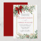 Convite Winter Greenery Red Bow Rustic *Gold Frame Wedding