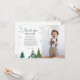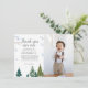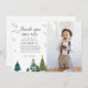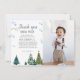 Elegante cartões de agradecimentos de comemoração de inverno com ilustração aquosa de pinheiros e flocos de neve. As palavras leram "obrigado você nevar muito pelo fazer do meu aniversário ONEMaravilhoso."