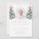 Celebre o primeiro aniversário da sua menina com este convite da Winter ONEDerland. Apresentando um arco de fita rosa, flocos de neve e árvores de neve, este charmoso design é perfeito para uma celebração mágica de inverno. Elegante e doce, é a maneira ideal de convidar a família e os amigos para o dia especial da sua menina.