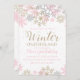 Winter Onederland é o primeiro convite para o aniversário com flocos de neve rosa, dourados e prateados.