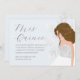 Este bonito convite de 15 anos de aniversário de inverno da quinceañera apresenta um estilo moderno com detalhes personalizados de celebração da quinceanera, tempo de massa e informações de recepção. Este belo cartão de convite inclui texto de cinza prateada sobre um fundo branco muito claro e azul lavado. Mis quince ilustrado veste um lindo vestido branco de neve e quinceanera prateado. Envie-me uma mensagem se você estiver procurando por um tom de pele diferente ou cor de cabelo.A parte de trás é um espaço para seu código rsvp qr com uma borda bonito do floco de neve. Personalize com seus próprios detalhes exclusivos!
