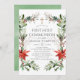 Pinho rústico de neve e abeto, natal floral de aquarela, primeiro convite de comunhão sagrado com um fundo verde de lavagem de aquarelas sage.