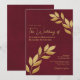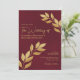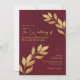 Convite Wistful Leaves Elegant Burgundy & Gold Wedding