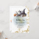 Celebre no estilo mágico convidando seus amigos bruxos com um convite personalizável para chá de bruxas com um chapéu de bruxa encantador, bule de chá e chaleiras, e sotaques de ouro reluzentes. Faça da sua festa de chá um caso de feitiçaria!