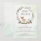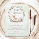 Celebrate the arrival of your little one with this beautifully designed rustic baby shower invitation. Featuring an adorable illustration of a deer adorned with a delicate arrangement of wildflowers, this invitation sums up charm and elegance. The light green background adds a soft, neutral touch, making it perfect for any baby shower, whether you're expecting a boy, a girl, or a surprise.