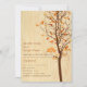 Convite rústico e encantador para um evento exterior do outono. Cores mostradas: Escala da luz - bronzeie a Brown escuro e a laranja da oxidação a vermelho escuro. O fundo do teste padrão do Woodgrain do falso e pouca imagem do pássaro do amor continuam na parte traseira (impressão informação adicional de RSVP ou de viagem no reverso).