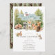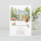 This cute baby shower invitation features woodland animals, such as a fox, raccoon, hedgehog, squirrel, mouse, deer, bunny and bear in a forest. The reverse side features a green background with trees and bears. Personalize it for your needs. You can find matching products at my store.