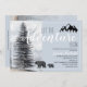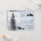 A aventura aguarda, a floresta russa dá chá de fraldas por convite postal em matizes azuis de cinza macia, com pinheiros florestais majestosos e silhueta montanhosa. Personalize o seu chá de fraldas. Consulte o conjunto de cheios de produtos para este design em: https://www.zazzle.com/collections/adventure_begins_woodland_bears_baby_suite-119679877296535208