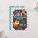 É uma garota! Convite para chá de fraldas floral; perfeito para chás primavera. Apresenta Cinzas e padrões de fundo de fevron branco com cervídeos e animais de raposa.