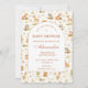 A charming woodland design featuring softly illustrated forest animals like foxes, deer, and raccoons nestled among delicate greenery and subtle natural textures. The warm neutral palette paired with the elegant arched layout creates a cozy yet refined aesthetic that feels both playful and timeless, making it perfect for a nature-inspired baby shower with a gentle, storybook touch.
