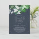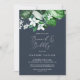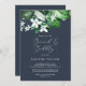 Este marinho verde de floresta, um brunch azul e um convite à bolha é perfeito para um evento de verão ou outono. A design do boho moderno apresenta folhas de esmeralda, sábio e aquarela verde-oliva e botânicos com esférulas de flores brancas elegantes.