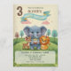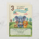 Celebrate a special third birthday with this sweet storybook-style forest animals birthday invitation. Featuring a friendly elephant, gentle deer, and cheerful lion in a soft pastel meadow, this design feels like a page from a children’s storybook.