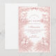 A soft and elegant baby shower design featuring delicate vintage-style blush pink toile illustrations. The frame is adorned with charming lambs, florals, celestial accents, and a romantic bow, creating a timeless storybook nursery aesthetic. Perfect for a classic, feminine celebration with a refined heirloom feel. The gentle pink palette and detailed engraving style give the design a sophisticated yet sweet atmosphere that works beautifully for traditional or cottagecore baby showers.