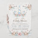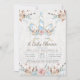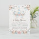 Azul-Chá de fraldas do Woodland Unicorn - Ouvidos azuis-bebê e chifres azuis, pestanas de ouro adormecidas cercadas por botânicos florestais de algodão e eucalipto e rosa selvagem em tons sutis de azul-sertanejo, verde-sábio e rosa-rosa - O fundo de textura de papel-d'água dá a este belo convite uma sensação de profundidade, fácil de personalizar o detalhe desta bela convocação de Chá de fraldas da Woodland. Design original por © WhimsicalArtwork™