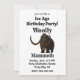 Wooly Mammoth Ice Aniversário Convite original design de Nisha Prabhu. Totalmente personalizável. Personalize com seus detalhes. Prepare-se para embarcar em uma aventura no mundo pré-histórico com nosso Convite de Aniversário para Idade do Gelo Wooly Mammoth! Perfeito para qualquer jovem explorador, este convite caprichoso dá palco a uma festa cheia de diversão que captura o entusiasmo da Era do Gelo. Apresentando uma ilustração adorável e vibrante de um mamute sacana, este convite despertará a imaginação de seus hóspedes e dará o tom para uma celebração fantástica. Perfeito para: festas de aniversário infantis com Idade do Gelo ou tema pré-histórico, eventos escolares, festas sobre a natureza ou qualquer celebração divertida que encoraje a criatividade e exploração, Palavras incríveis para os hóspedes lembrarem do dia excitante.