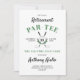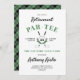 Um convite de festas de golfe temido, branco e verde, com uma coroa e uma bola de golfe e tacos de golfe cruzados.