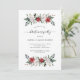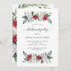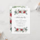 Este simples e elegante convite de festas de Natal apresenta buquês de na moda, aquarelas, feitas de verde moderno e flores de Natal vermelhas e brancas, sobre fundo branco. A parte de trás do convite apresenta uma na moda, coroa de Natal correspondente. Este estilo elegante é perfeito para a sua própria festa familiar ou para um evento profissional de feriado corporativo.