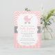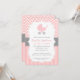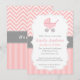 Convite Xadrez Branco e Rosa, Carrinho de Bebê, Chá de Beb
