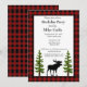 Este convite xadrez búfalo vermelho e preto rústico projetado é perfeito para ele. O design também apresenta árvores de abeto e uma silhueta de um alce.