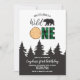 Nosso Urso é Selvagem! Vestido, Bears e Xadrez de Buffalo, primeiro convite de aniversário.