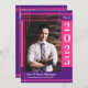 Convite Xadrez de Foto de Graduação de Cor Púrpura Rosa