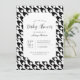 Convite de chá de bebê geométrico clássico e atemporal em preto e branco com padrão xadrez. Estilos de fonte e layout personalizáveis, apresentando um fundo com padrão simples e um design xadrez geométrico limpo. Perfeito para convites de chá de bebê unissex, convites de chá de bebê masculino e convites de chá de bebê vintage.