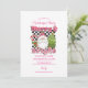Traga a alegria festiva com este convite de festa de Natal ousado e divertido que apresenta um fundo xadrez, Papai Noel rosa pastel, bengala de Natal e uma árvore de Natal peculiar. A tipografia “Merry & Bright” se destaca em tons modernos de rosa, branco e verde, tornando este design uma variação divertida do tradicional. O texto totalmente personalizável permite que você personalize todos os detalhes da sua festa com uma fonte rosa coordenada. Perfeito para reuniões de Natal, festas de casa nova ou encontros familiares festivos.