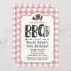 Convites à Xadrez rosa Festa de aniversário do CHURRASCO do rosca do porco.