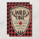 Convite Xadrez Rústica de Wild One Boys Lumberjack primeir