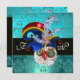 Elegante, sofisticado, legal, design de monograma único com um chapéu Elfic azul verde corujas expressivas engraçadas, trevos pedras preciosas rubi safira vibrantes e flores damasco aqua azul verde turquesa. Fácil de personalizar com suas iniciais e texto próprio como anúncio de festa de aniversário, casamento, cartões de lugar, save-the-date, cartões de agradecimento, despedidas de solteira, festas, brindes de noivado, ou praticamente qualquer evento que você desejar! Modelagem e renderização NURBS muito precisas por Bulgan Lumini (c). Parte da série Hyper Talismãs.
