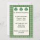 A xadrez verde e branca é o fundo desta Rua. convite de festas do Dia de Patrick, com três sortudos shamrocks verdes de nós celtas no topo de um quadro verde e creme. A parte de trás é uma cor de pergaminho sólido, que corresponde ao dentro do quadro na parte frontal.