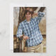 Um convite de festa de formatura de golfe com tema "golfe", com uma xadrez vermelha e preta impressa, com a data dentro a bola de golfe sobre tacos de golfe cruzados. Adicione uma foto do formando ao fundo. Convite para comemoração do golfe vermelho como a cor do sotaque.