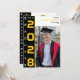 Graduation party invitation in black, white, and yellow — bold editorial design featuring photo, RSVP details, and contact information for the driven, well-rounded graduate ready to celebrate their milestone in style. Strong vertical typography down a dramatic black banner, oversized yellow numerals, and a circular photo frame on the back make this a complete, polished invitation suite. The front commands attention with high-contrast design and sharp yellow details that honor the pride of this achievement, while the back provides all the practical party details — RSVP date, contact, and venue — in a clean, structured layout. A confident, memorable invitation for the ambitious graduate and the family proud to celebrate them. Need design support? Email remidevandesigns@gmail.com RemideVan©